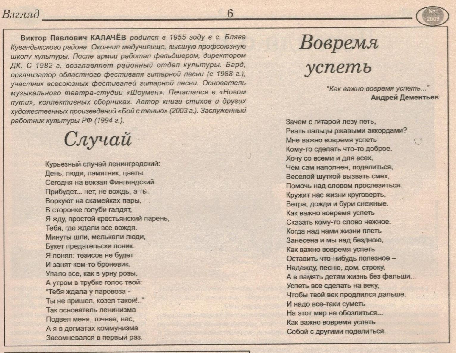 Калачев, В. Стихи / Виктор Калачев. - Текст : непосредственный // Взгляд. - 2009. - №1. - С. 6.