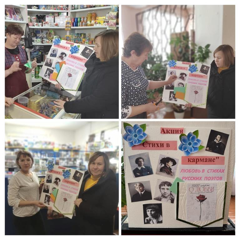 В преддверии этого праздника библиотекарь Новоуральского ф.№24 провела акцию «Стихи в кармане» под названием «Стихи о любви русских поэтов: С. Есенина, А. Ахматовой, А. Пушкина, А. Блока». Участники акции с удовольствием вспомнили и прочли стихотворения.