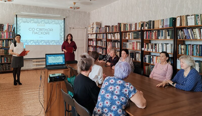 На пасхальной неделе, 14 апреля, сотрудниками Центральной библиотеки имени П.И. Фёдорова была организована встреча членов клуба по интересам «В кругу друзей» в честь Великой и Светлой Пасхи - азбука православия «Вот и Пасха, запах воска, запах тёплых куличей».