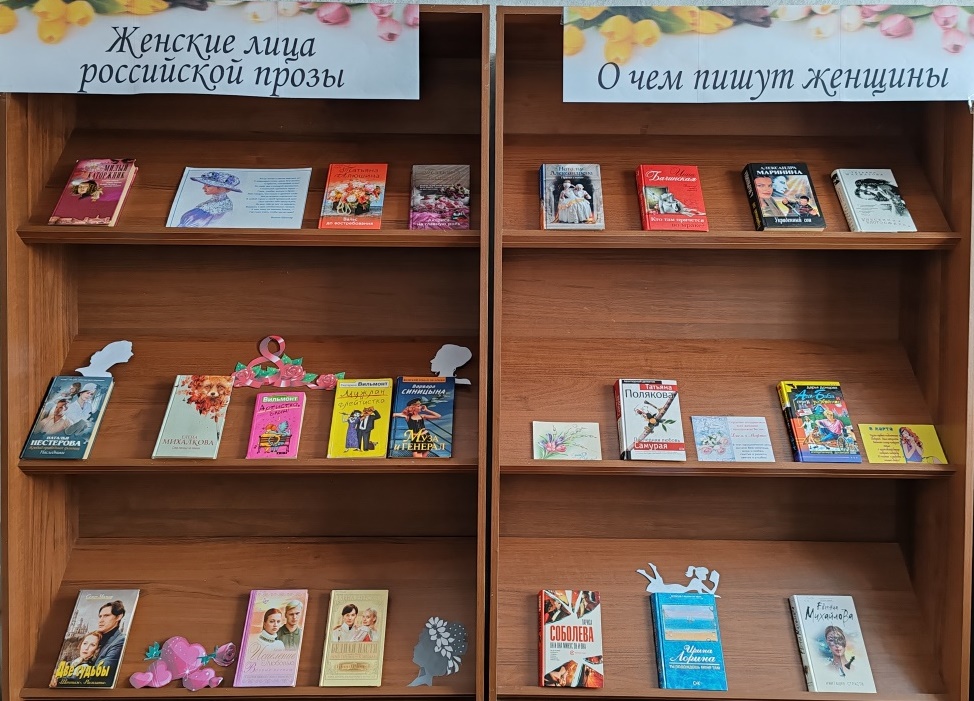 К Международному женскому дню в читальном зале библиотеки оформлена книжная выставка «Женские лица российской прозы», на которой представлены книги, написанные представительницами прекрасного пола. |
