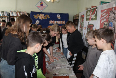 На втором этаже гости мероприятия могли сделать памятный снимок около фотозоны «Помним! Гордимся!», познакомиться с литературой о Великой Отечественной войне и специальной военной операции на книжной выставке «Пока мы помним прошлое, у нас есть будущее!».