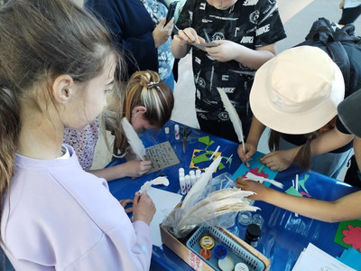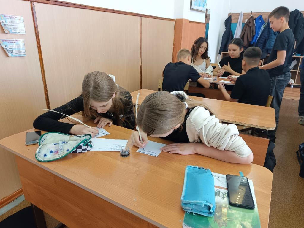 В конце мероприятия учащиеся совершили путешествие назад, в прошлое, и попробовали написать пером и чернилами. Ребята поняли, что это не так просто.
