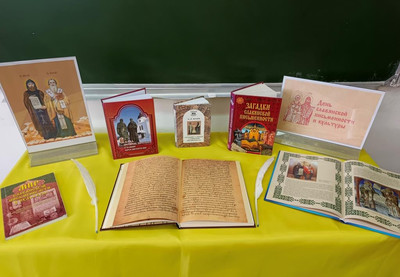 Сотрудники Центральной библиотеки имени П.И. Фёдорова представили книжную выставку, посвящённую основателям русской письменности святым Кириллу и Мефодию, а также книги о славянской культуре и истории.