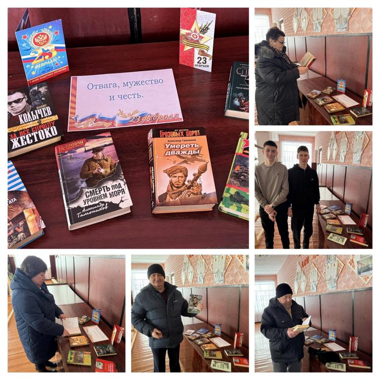 В фойе дома культуры библиотекарь Новоуральского ф.№24 оформила книжную выставку «Отвага, мужество и честь». Для выставки была подобрана литература, отражающая мужество, благородство, честь, отвагу сильной половины человечества.