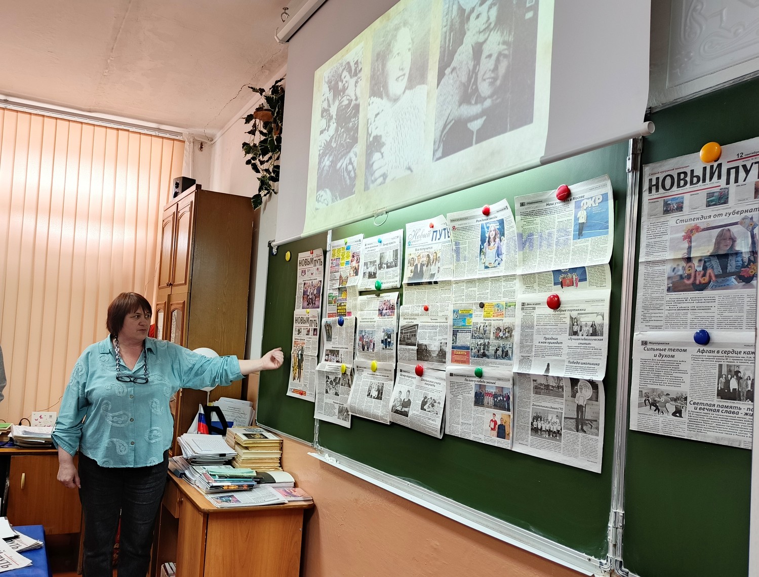 Учитель Ирина Нестерова рассказала учащимся о своем опыте работы корреспондентом «Нового пути»: как выглядит типичный день журналиста, какими качествами он должен обладать, с какими трудностями в работе приходилось сталкиваться, как газета готовится к печати.