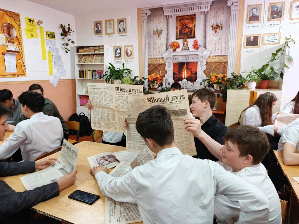 К юбилею «Нового пути» для учеников 9 и 10 классов средней школы №1 сотрудники Центральной библиотеки имени П.И. Фёдорова провели библиотечный урок «Голос времени».
