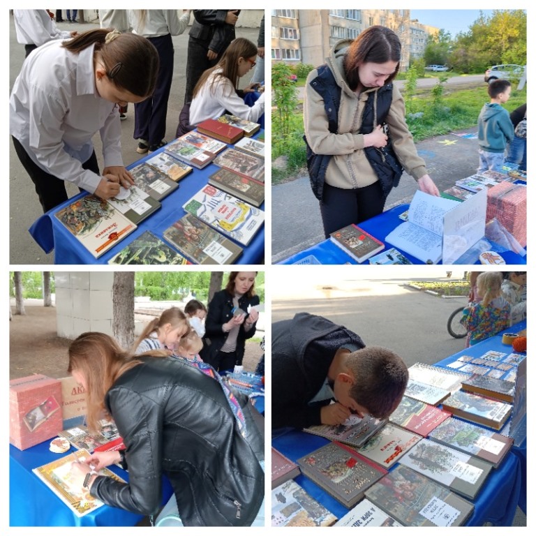 В рамках праздничных мероприятий библиотекари подготовили книжную выставку с лучшими книгами о Великой Отечественной войне. Свой голос кувандычане отдавали за понравившуюся книгу, представленную на выставке, записывая свой вариант на специальном бланке, который они оставляли в ящике.