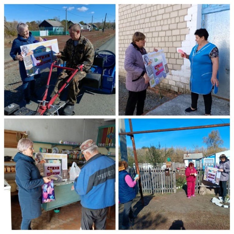 3 октября библиотекарь Краснознаменского ф.№14 провела акцию «Стихи в кармане» «О поэте говорят его стихи», посвященную 130-летию со дня рождения С. Есенина. К участию в акции привлекались жители села, было предложено вспомнить и прочитать вслух любимые стихотворения юбиляра, а также каждому участнику вручались памятки с поэтическими строками поэта.