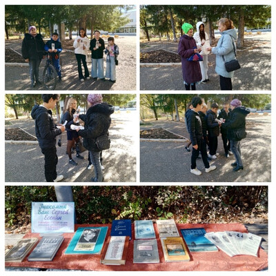 3 октября на площади перед ДК «Криолит» сотрудники Городского ф.№1 провели акцию «Стихи в кармане», посвящённую 130-летию со дня рождения русского поэта С.А. Есенина. Библиотекари подготовили и раздали закладки со стихами С. Есенина, которые отразили различные грани таланта поэта, в том числе любовную лирику, любовь к Родине и родной природе. К мероприятию была подготовлена книжная выставка «Знакомый Ваш Сергей Есенин», с которой ознакомились присутствующие.