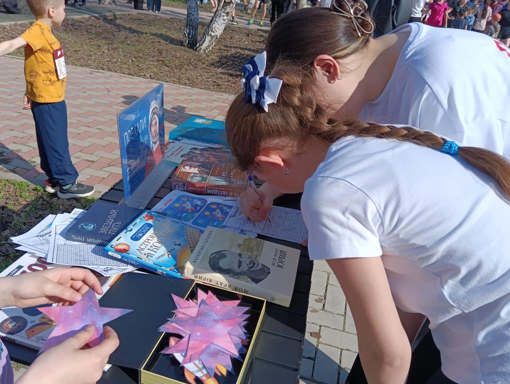 Гости мероприятия познакомились с помощью книжной выставки с изданиями о первом лётчике‑космонавте, других героях космических открытий, истории космических кораблей и тайнах Вселенной.