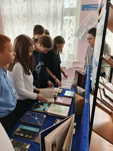 Завершился час познания знакомством с книжной выставкой, где были представлены документальные и художественные издания, фотоматериалы, подробно освещающие жизненный путь Юрия Гагарина.
