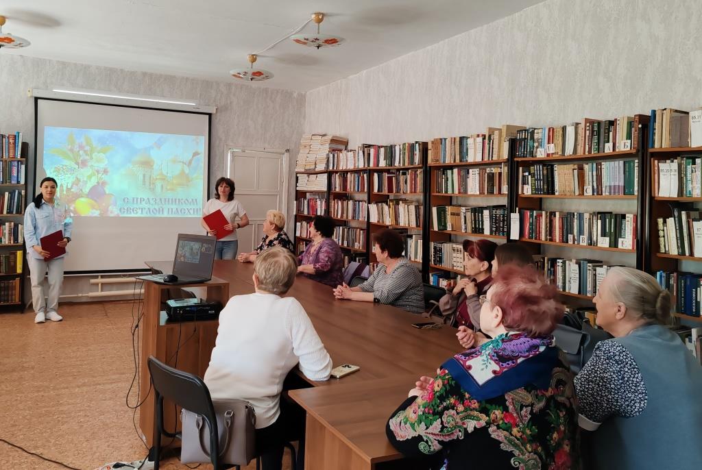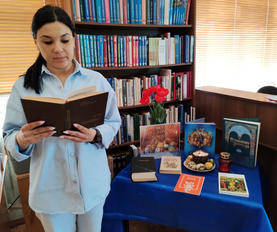 Стихи и песни о весне звучали в исполнении Ф. Оржеховской, Н. Морозовой, Е. Рединой, О. Чекалиной. Завершилось мероприятие обзором выставки, посвящённой древнейшему и самому важному христианскому празднику.