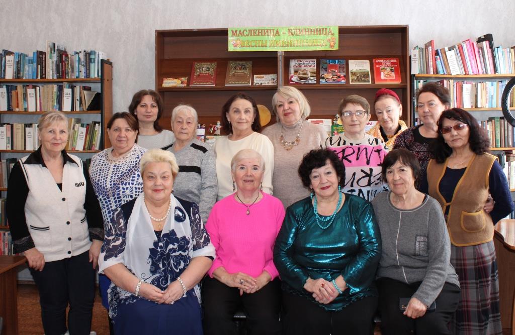 26 февраля Новосимбирская библиотека собрала клуб пожилых читателей «Огонёк» на фольклорные посиделки «Чайно-блинное раздолье. Ух, Маслёна, хороша!». Темой посиделок в этом году было выбрано главное угощение на Масленице – блины.