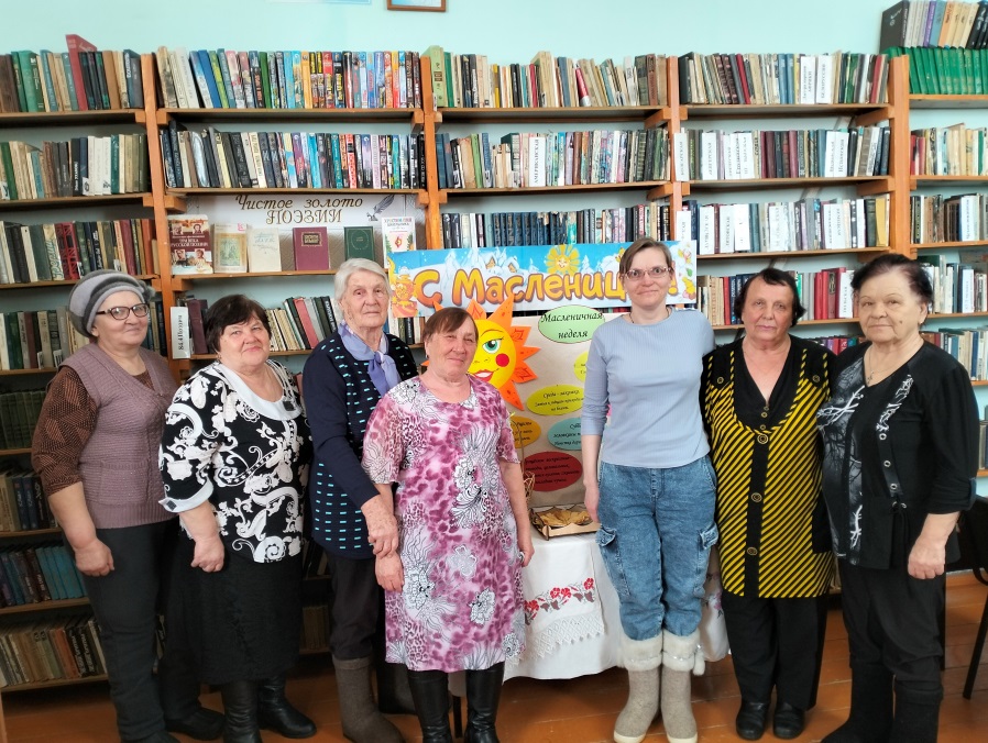 Участницы клуба Фаина Оржеховская, Наталья Морозова, Ольга Чекалина, Екатерина Редина исполнили песни, о любви, о жизни, о деревни. Присутствующие вспомнили пословицы и поговорки о блинах, о праздничных забавах, а также разгадывали тематические загадки. Развлекательная программа прошла в тёплой обстановке и вызвала положительные эмоции у всех участников.