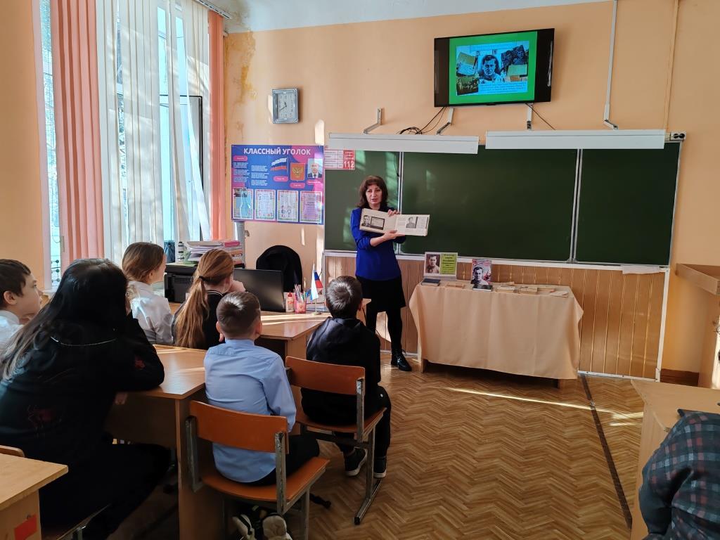 Ребят познакомили с биографией поэта и с самыми яркими произведениями, большая часть из которых — это стихотворения о Родине. Эта лирика пробирает до глубины души, раскрывая жестокость и реалии войны. Боль пронзает каждую строку стихотворения «Варварство». С большим интересом ученики рассмотрели книги, представленные на выставке «Стихи мои – свидетели живые…».