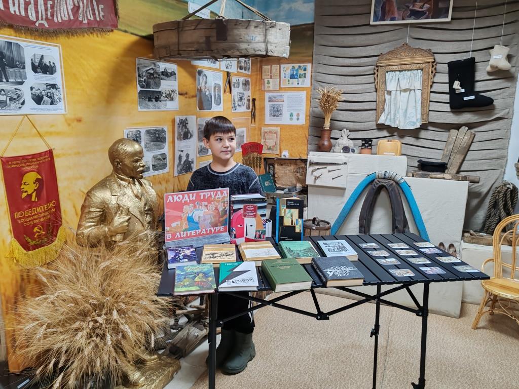 В зале экономического развития расположилась книжная выставка «Люди труда в литературе» с произведениями советской литературы, рассказывающими о героях разных профессий. Участники акции смогли сыграть в известную игру «Мемо», посвященную фильмам XX века о людях труда.
