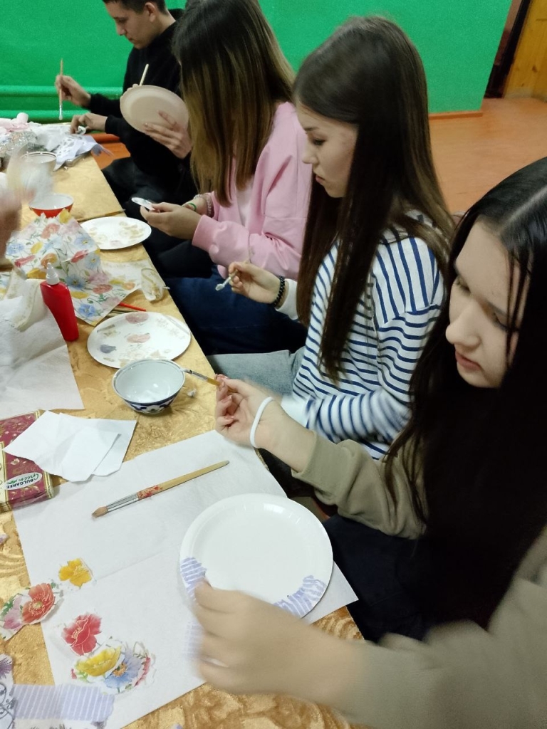 Также была проведена викторина «Искусство от А до Я», мастер-класс по декупажу, на котором участники расписывали тарелочки.
