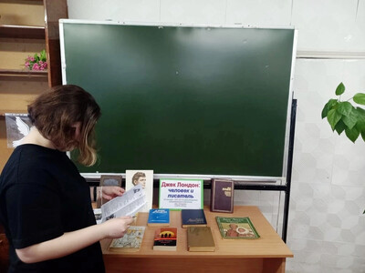 К мероприятию была подготовлена книжная выставка «Джек Лондон: человек и писатель» и по ней был проведён обзор. На книжной выставке был представлен буклет «С подлинной верой в человека», с которым ознакомили присутствующих. |