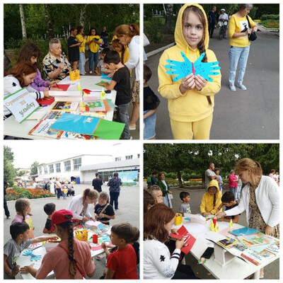 Лето – это любимая пора для детей. Летние каникулы – это время открытий, знакомств, самореализации и творчества. Поделки из бумаги – оригинальное времяпрепровождение, занимательный и захватывающий вид рукоделия, который стал очень популярным в последнее время. Библиотекари предложили присутствующим сделать бабочку. Для этого нужно было обвести свою руку на сложенном вдвое листе бумаги, вырезать полученный рисунок, также вырезать туловище с головкой, склеить, раскрасить фломастерами бабочку разными узорами. Каждая бабочка получилась оригинальной и неповторимой.
