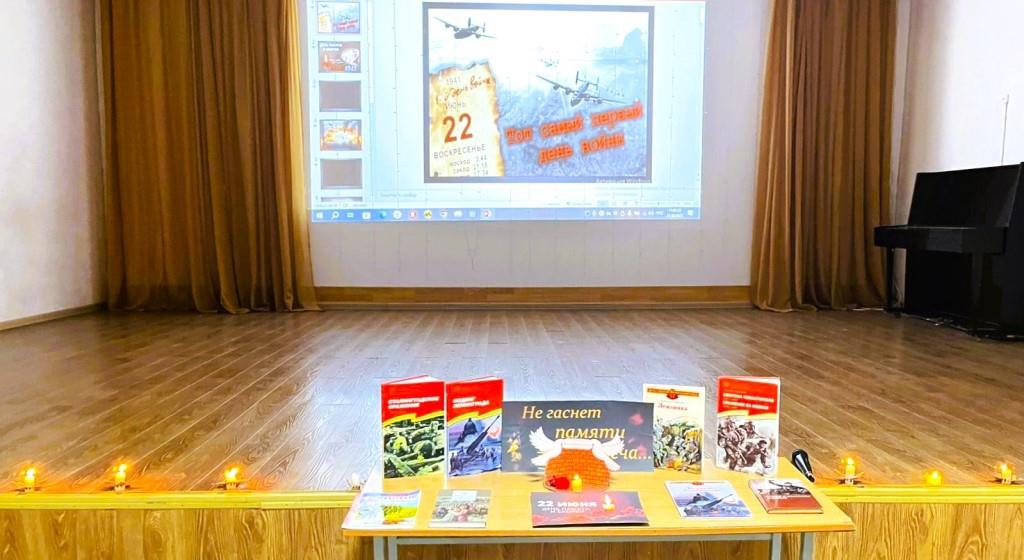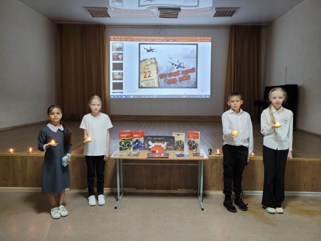 21 июня, в рамках Всероссийской акции «Свеча памяти», сотрудники Городского филиала № 4 в лагере дневного пребывания «Страна детства» Гимназии №1 провели час памяти и мужества «В этот день земля рванула в небо».