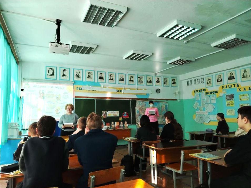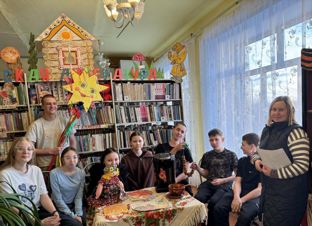 18 февраля сотрудники Городского филиала № 4 с учащимися 8 «в» класса Гимназии №1 провели фольклорный час «Масленица хороша – широка её душа».