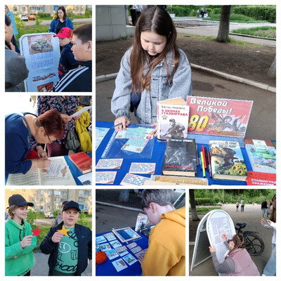 В преддверии 80-летия Победы в Великой Отечественной войне и в День Победы сотрудники библиотечной системы приняли участие в праздничных мероприятиях, которые проходили в нашем городе. Для кувандычан библиотекари подготовили различные тематические площадки.